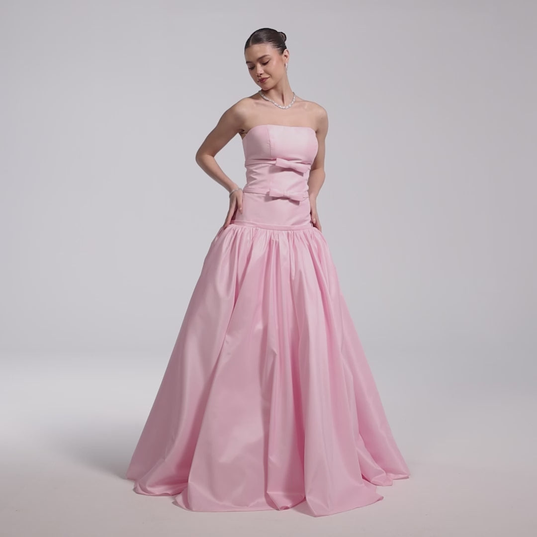 Pink Taffeta Strapless Bow-Detailed Gown