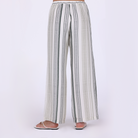 The Crinkle Stripe Viscose Wide Leg Pants from our Summer 2025 Collection. Made from lightweight crinkled viscose, these relaxed pants feature a wide-leg silhouette and an elastic waistband for effortless ease and movement.