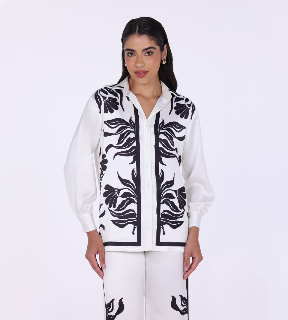 The Printed Straight Pant from our Summer 2025 Collection. Cut from smooth satin with a soft sheen, this pant features a straight-leg silhouette, back darts for gentle shaping, and a clean front zipper for a polished finish.