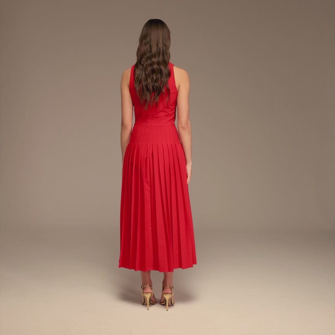 This halter-neck dress is made from structured cotton twill that holds its shape while feeling light on the body. Stitched pleats at the waist create soft volume without adding bulk, while the pleated skirt gives natural movement as you walk. It's an easy option that works for warm days and evening plans alike.