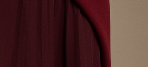 Burgundy Asymmetric Neckline Midi Dress with Pleats