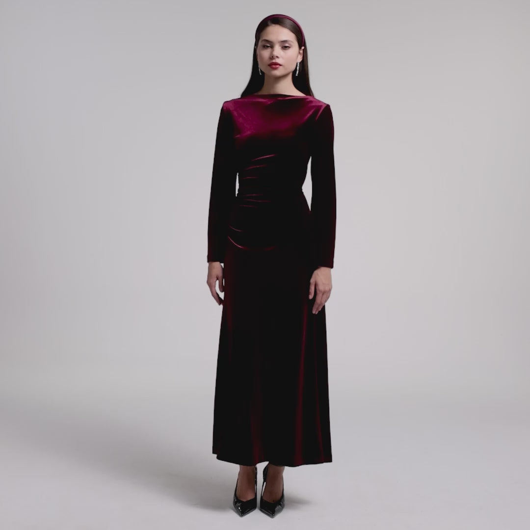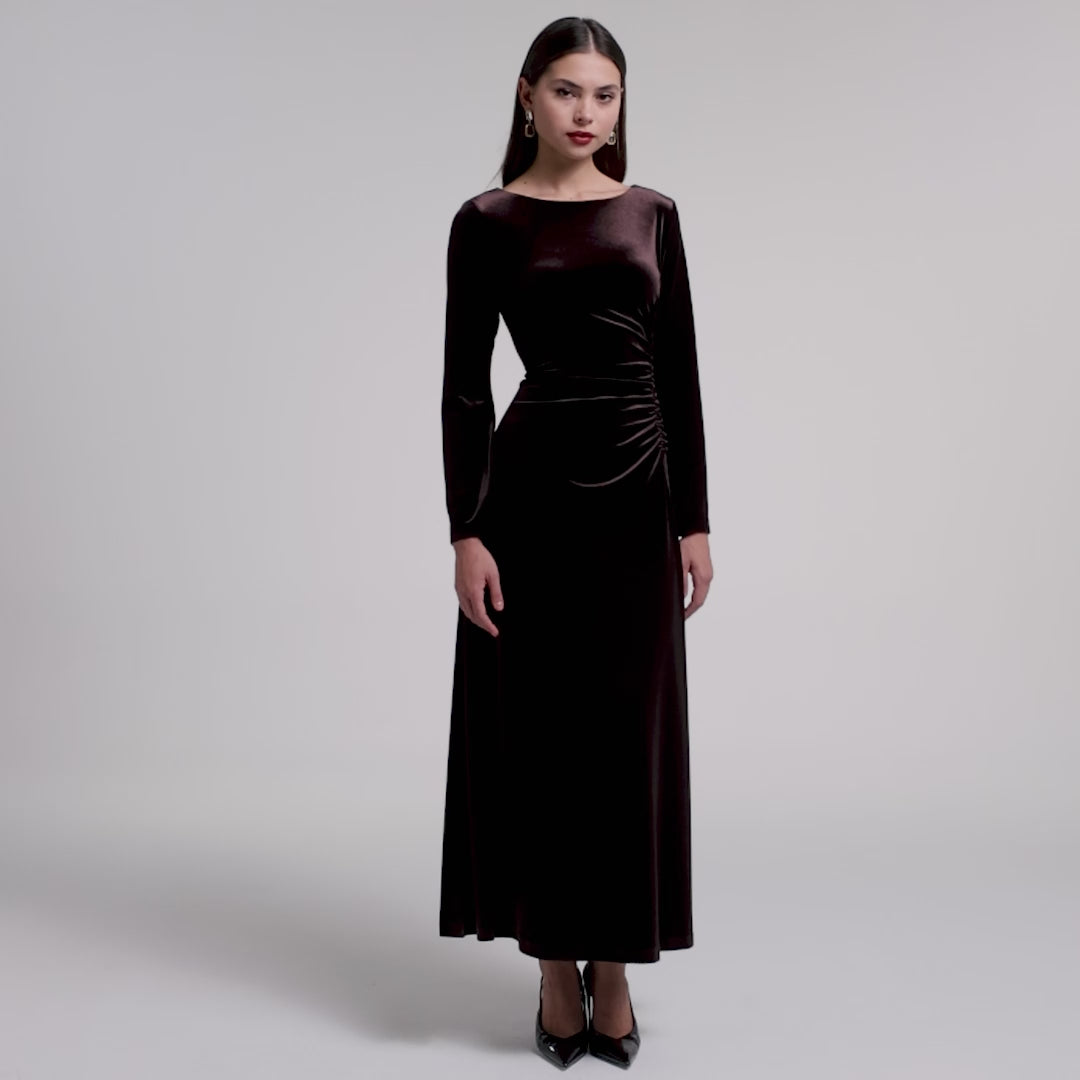 If you like your dresses with a little drama, but still super wearable, this ruched velvet midi delivers. The soft stretch velvet hugs in all the right places, with side ruching that flatters the waist without clinging. A boat neckline keeps things elegant, while the flared skirt adds movement. Basically: it shapes your body, moves with you, and doesn’t feel like you're stuck in a corset.