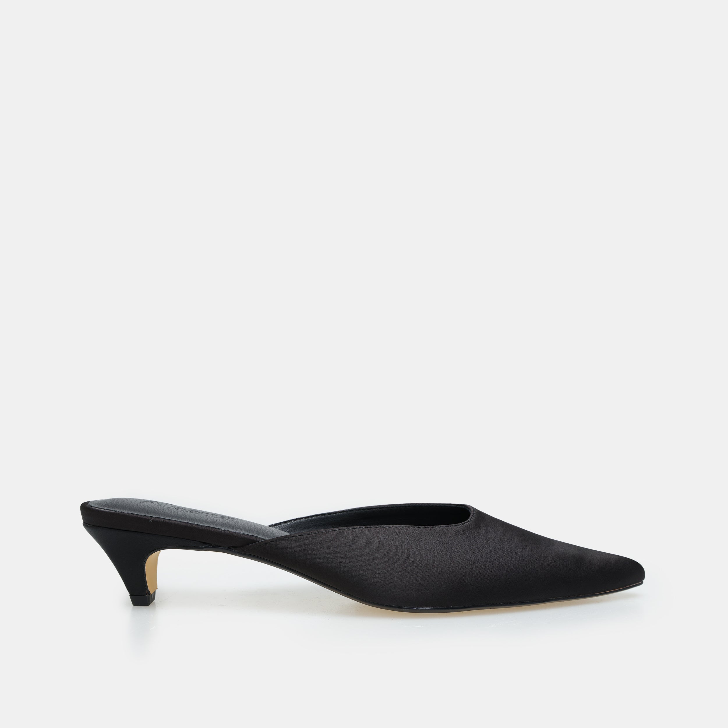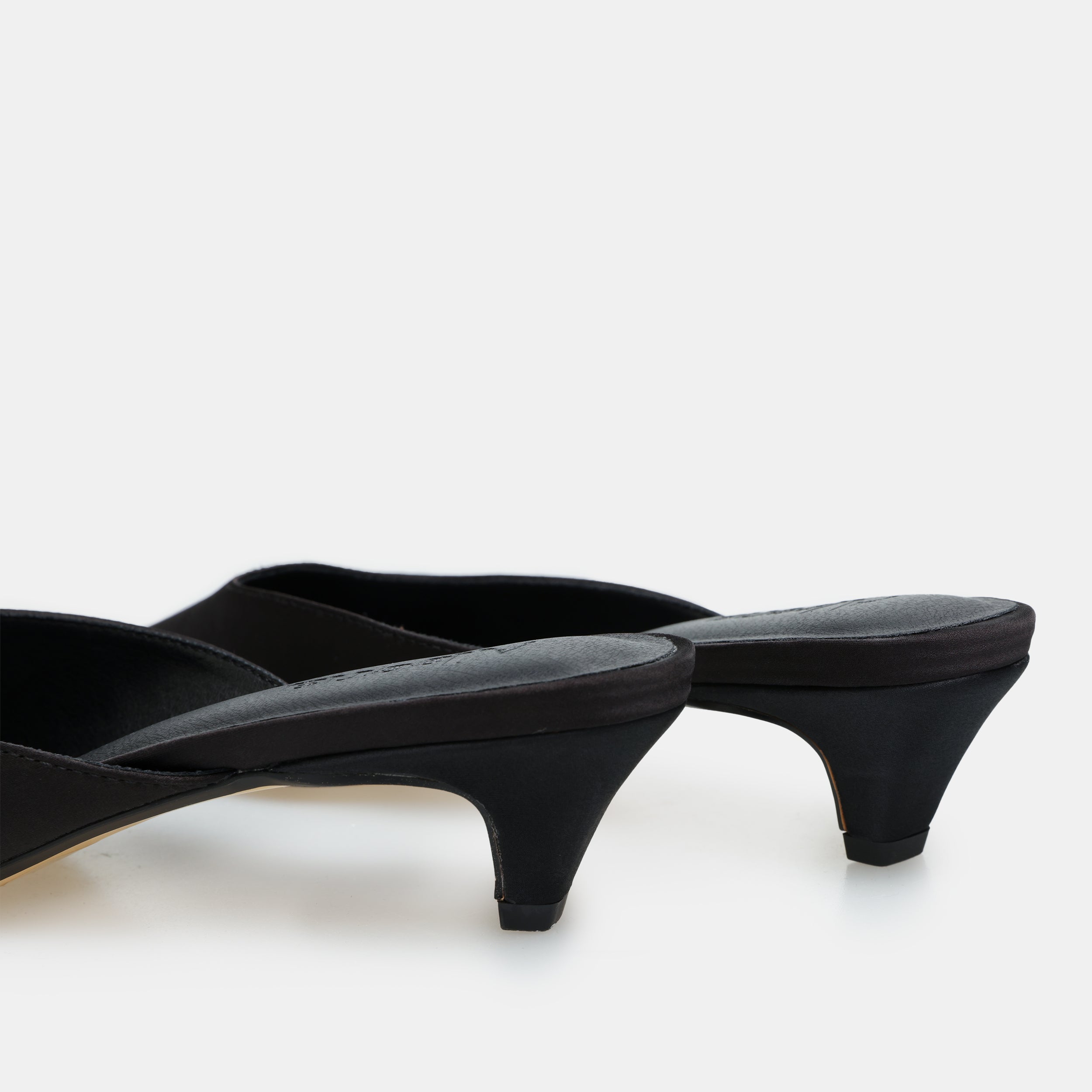Black Satin Pointed Toe Mules