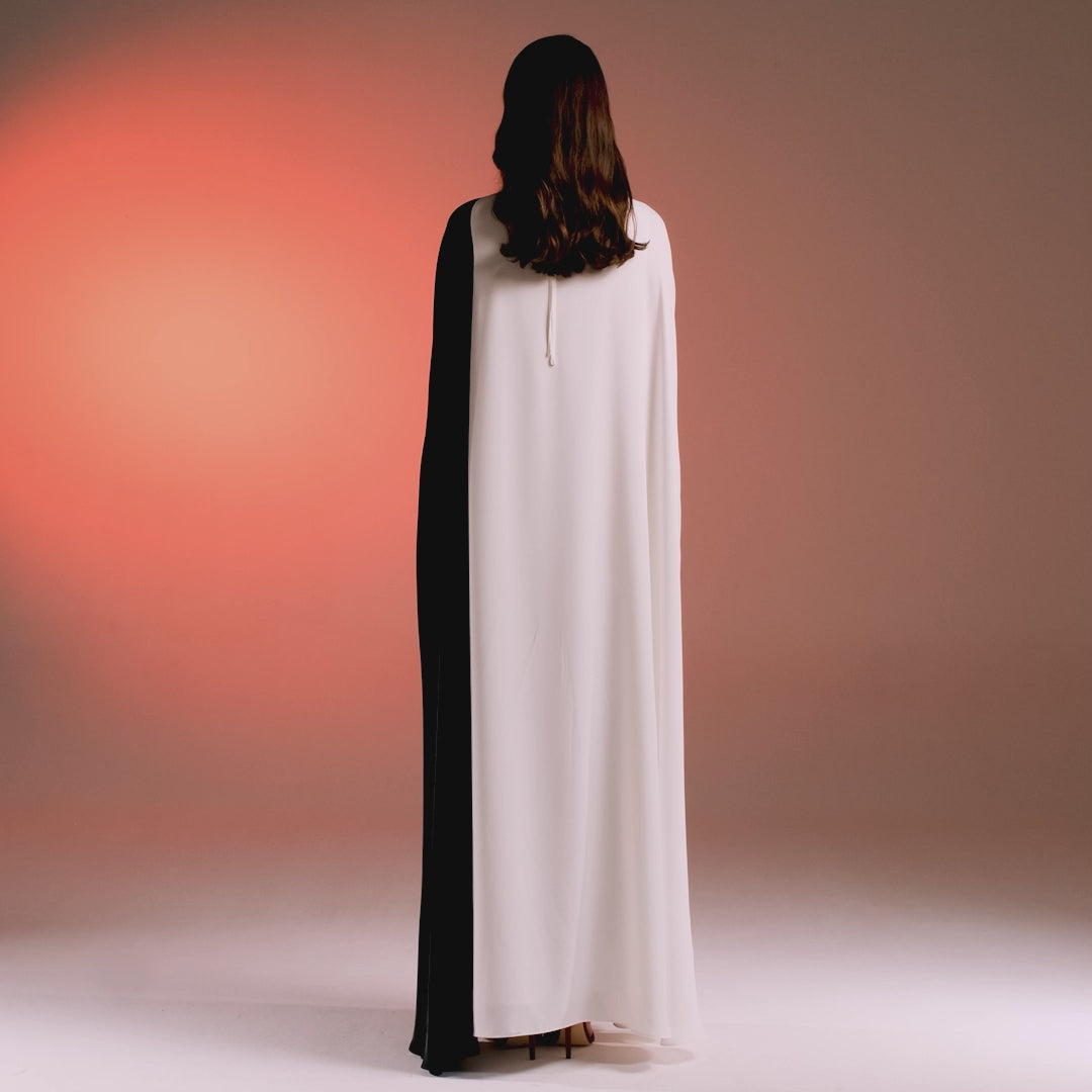 Embrace glamour and sophistication in our Cape-Effect Draped Satin Kaftan, The elegant cape-effect and draping create a captivating silhouette, perfect for Ramadan nights. Elevate your style with this luxurious piece that exudes an exclusive, high-fashion aura.