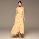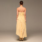 This light yellow halter ruffle chiffon dress is a fun pick if you like something airy and flattering for Eid gatherings. The soft ruffles add movement without feeling overwhelming, and the halter neckline shapes the shoulders in a gentle, feminine way.