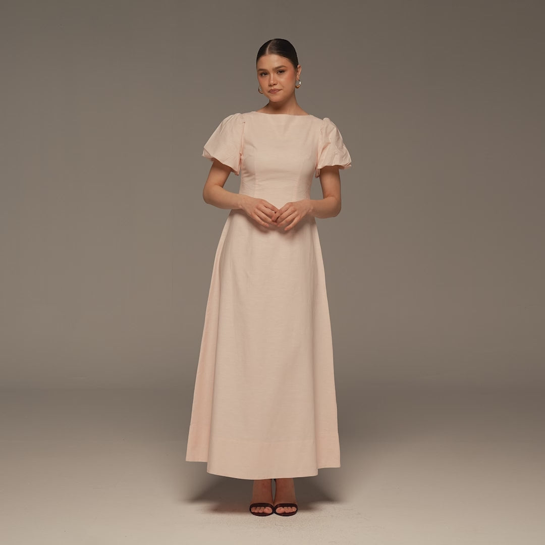 Pink Puff Sleeve Cotton Maxi Dress
